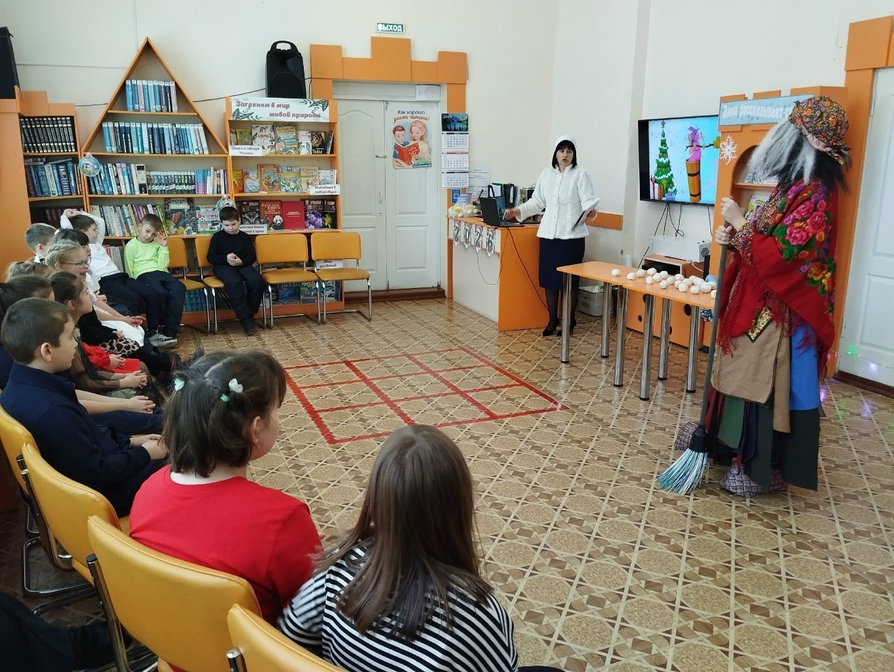 Для юных читателей в детской библиотеке подготовили увлекательное театрализованное представление "Новый год в компании с Бабой Ягой". Сказка началась с того, что Зимушка-Зима пригласила ребят в волшебный мир. Однако их ждало испытание: Баба Яга похитила и заколдовала Деда Мороза и Снегурочку. Но юные зрители, вместе с Зимушкой, проявили смекалку и находчивость, справившись со всеми заданиями коварной старухи. Они приготовили угощение "Заморожка", сыграли в новогодние "Крестики-нолики", порадовали Бабу Ягу рисунком, развеселили её и закружились в танце. В финале, как и в любой хорошей истории, добро восторжествовало. Все вместе помогли Деду Морозу и Снегурочке зажечь огни на ёлке. Завершением праздника стали творческие номера детей и новогодняя лотерея.