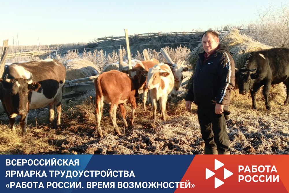 🤝 На площадке Всероссийской ярмарки трудоустройства "Работа России. Время возможностей" специалисты отделения Кадрового центра "Работа России" провели для него консультацию, помогли составить бизнес‑план и оформить заявку на финансовую поддержку. Благодаря этому Игорь Викторович приобрёл стадо крупного рогатого скота и создал собственную ферму.