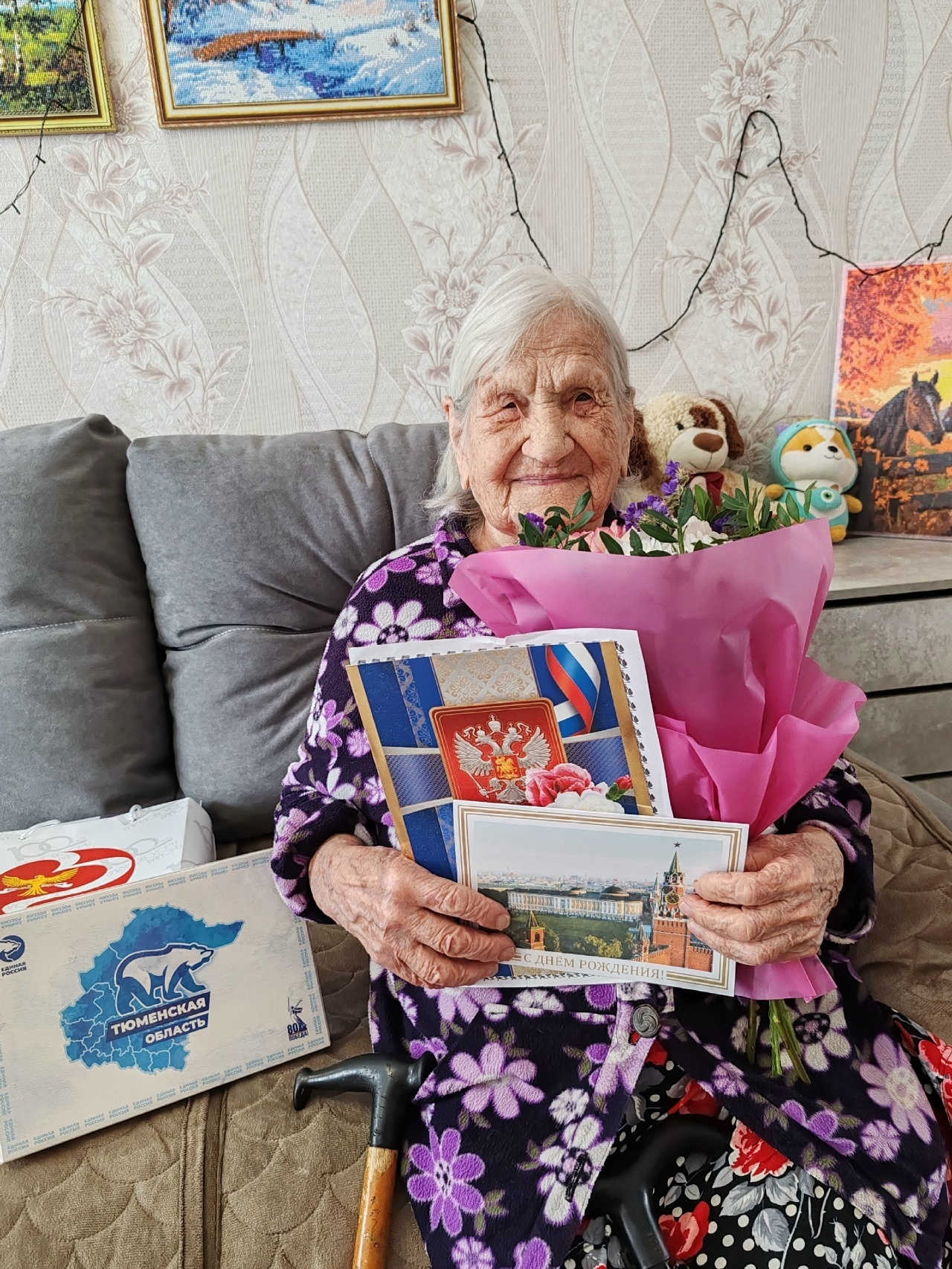 Евдокия Николаевна благодарит судьбу за жизнь, за хороших людей, за родных и близких, которые находятся рядом с ней. Она верит в светлое будущее, верит в президента, верит в нас с вами. Имениннице пожелали крепкого здоровья. Пусть её глаза всегда блестят от счастья, как в этот день!