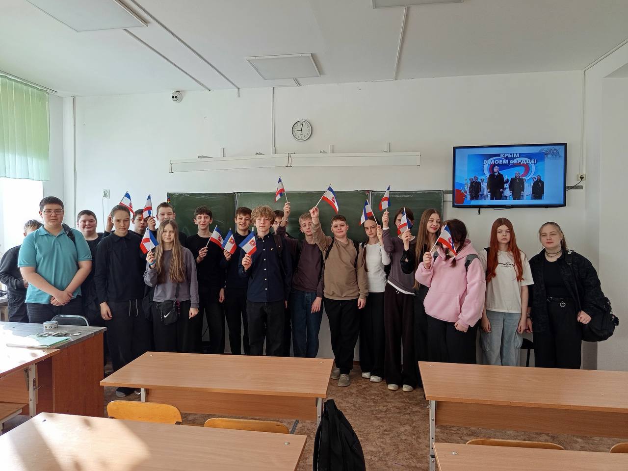 Завершился урок яркой акцией "Флаг единства".