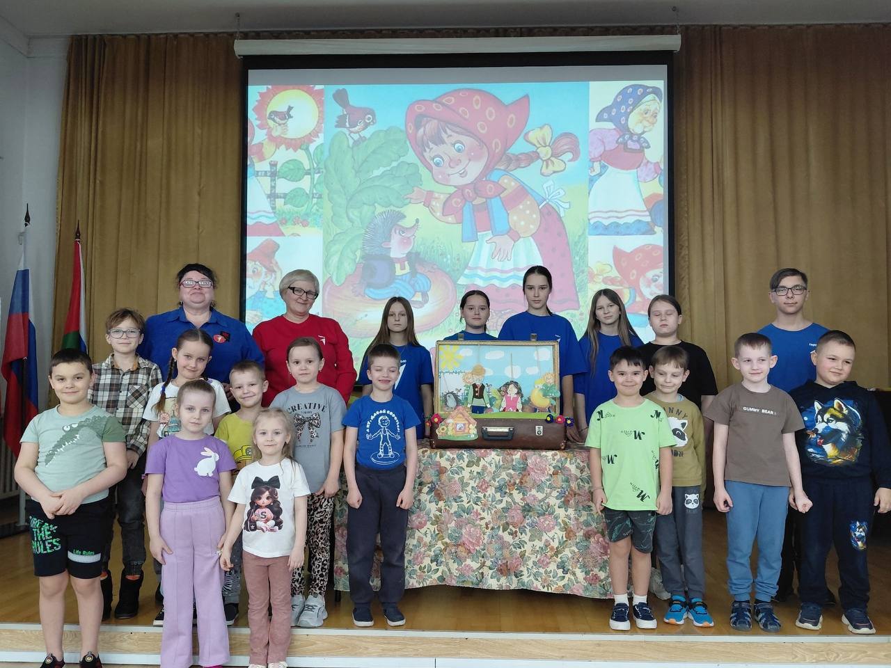 Познакомившись с народными сказками и легендами, участники остановили выбор на белорусской сказке "Пых". Они не просто инсценировали её, а реализовали творческий проект в формате "театр в чемодане" — компактной мобильной постановке с миниатюрными декорациями и куклами.
