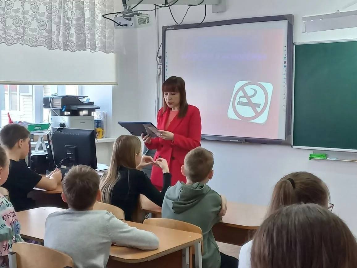 Тема беседы — "Вред курения (парения)". Специалист доступно рассказала ребятам о последствиях употребления табака и современных курительных смесей, развеяв миф о безвредности вейпов. Ученики активно включились в обсуждение.