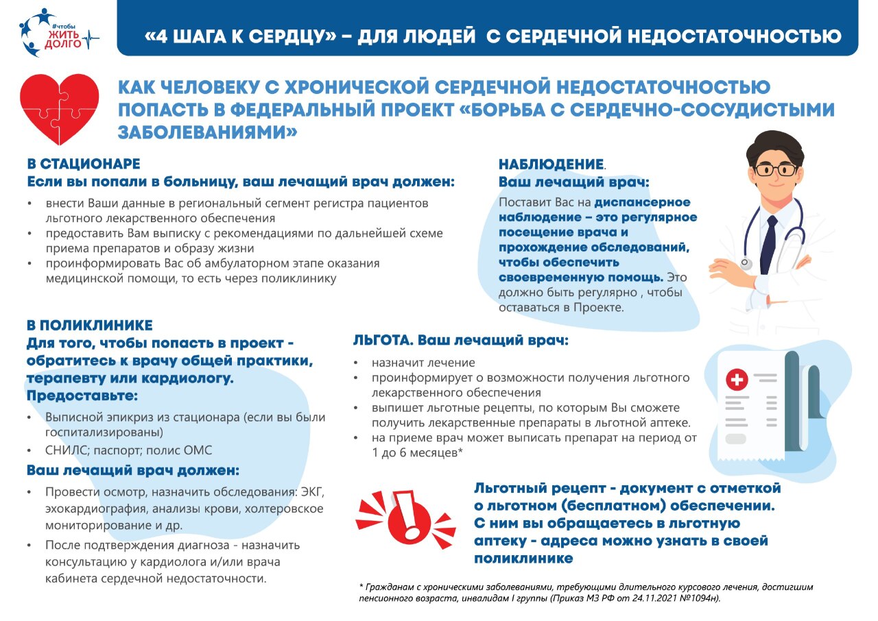 Для этого и создан проект "Чтобы жить долго" Всероссийского союза пациентов. В нём простым языком рассказывают, какие обследования важны при проблемах с сердцем, как следить за своим состоянием и куда обращаться, если что-то тревожит.